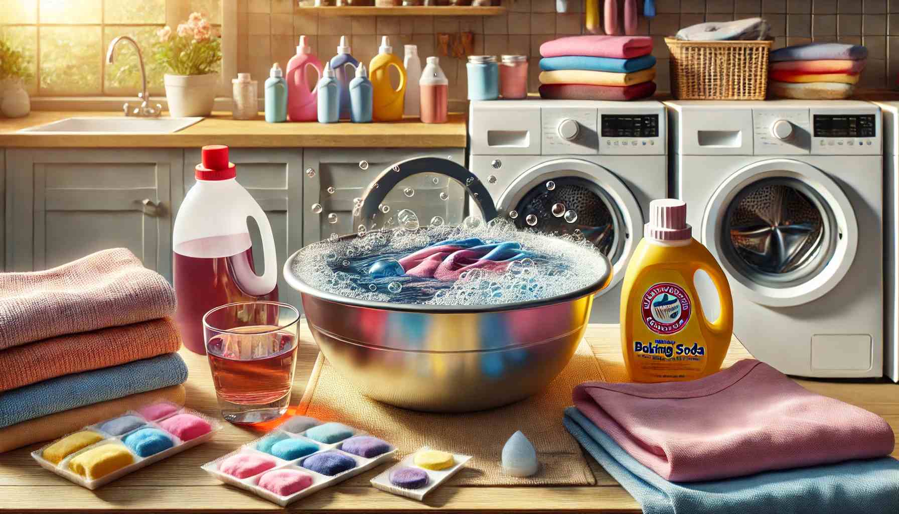 Для цветных тканей лучше использовать средства, помеченные как "для цветного белья". Они мягко удаляют краску, не повреждая оригинальный цвет ткани.