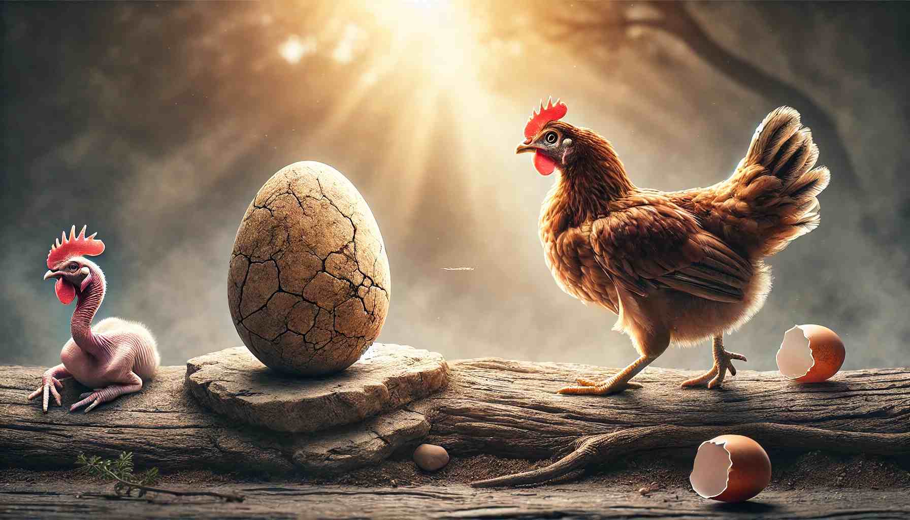 - Генетика: Генетические изменения, которые сделали курицу отдельным видом, произошли внутри яйца, которое отложили её предки. Таким образом, яйцо предшествовало курице.