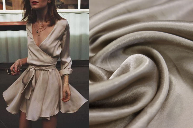 блеском; Он облегающий и подобный на шелк. Материал с настоящим названием