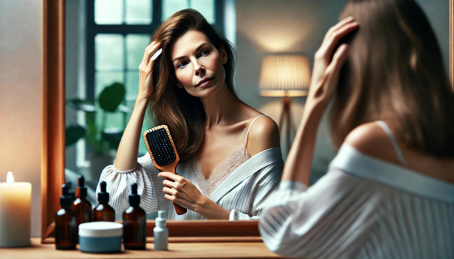 Когда уровень эстрогена падает, волосы начинают расти медленнее и становятся тоньше. Кроме того, снижение эстрогена повышает влияние андрогенов (мужских гормонов), которые могут усиливать выпадение волос. У некоторых женщин это может приводить к андрогенетической алопеции - состоянию, когда волосы редеют преимущественно на верхней части головы.