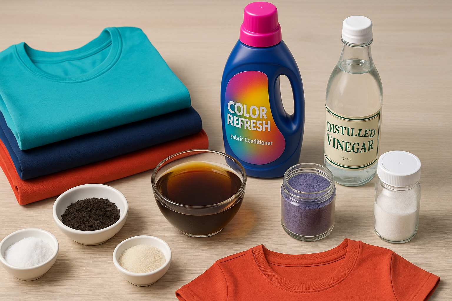 Если вы не хотите использовать магазинную химию, подойдут и домашние методы. Например, черный чай хорошо освежает темные вещи, а соль с уксусом помогает закрепить цвет. Эти рецепты простые и безопасные, особенно для деликатных тканей. Главное — не использовать горячую воду и не замачивать одежду слишком долго.