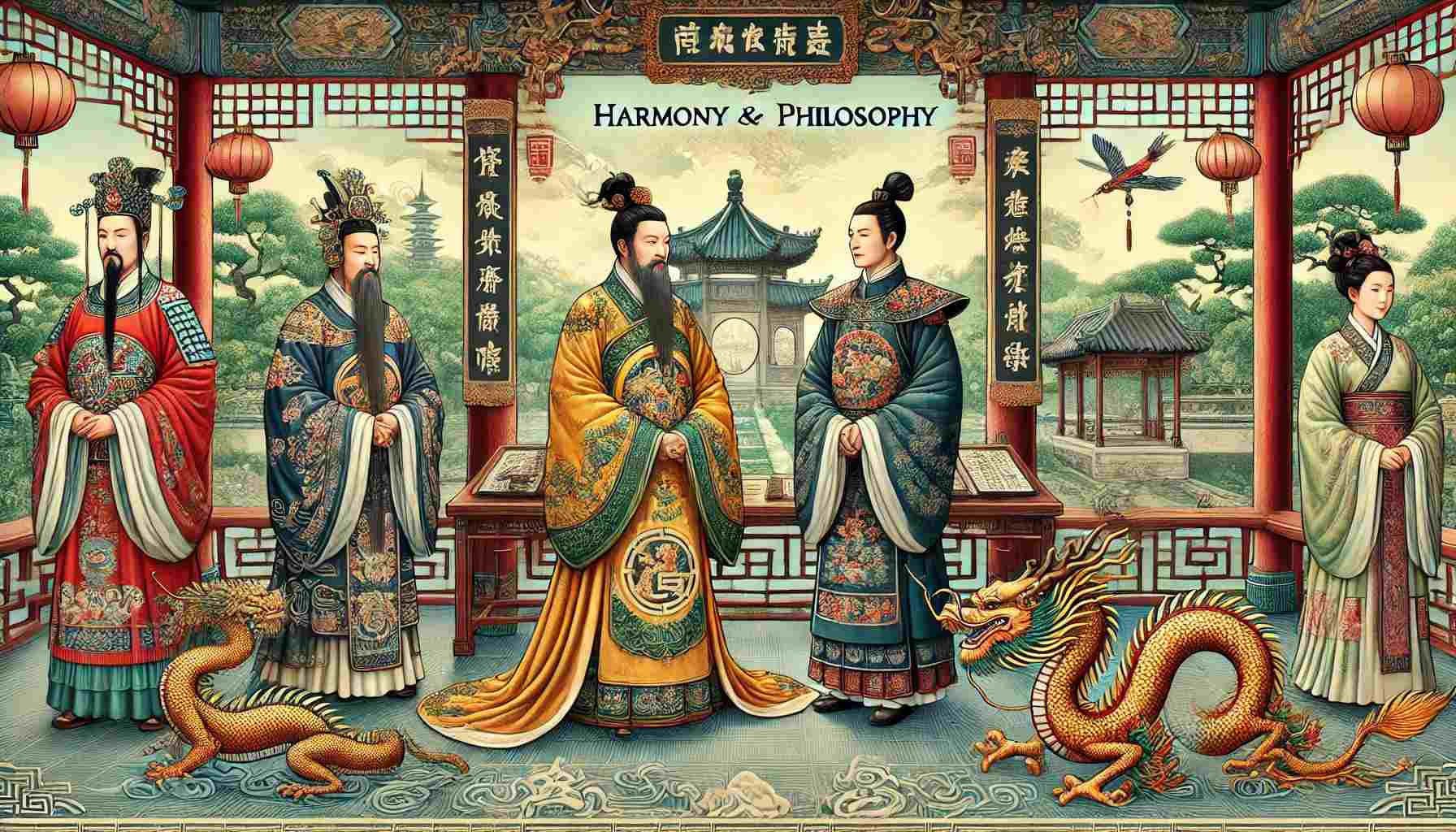 Китайські халати, відомі як "ханфу", шили з шовку та прикрашали традиційними візерунками, які відображали філософські ідеї. Наприклад, зображення драконів на халатах імператорів символізували силу та владу.