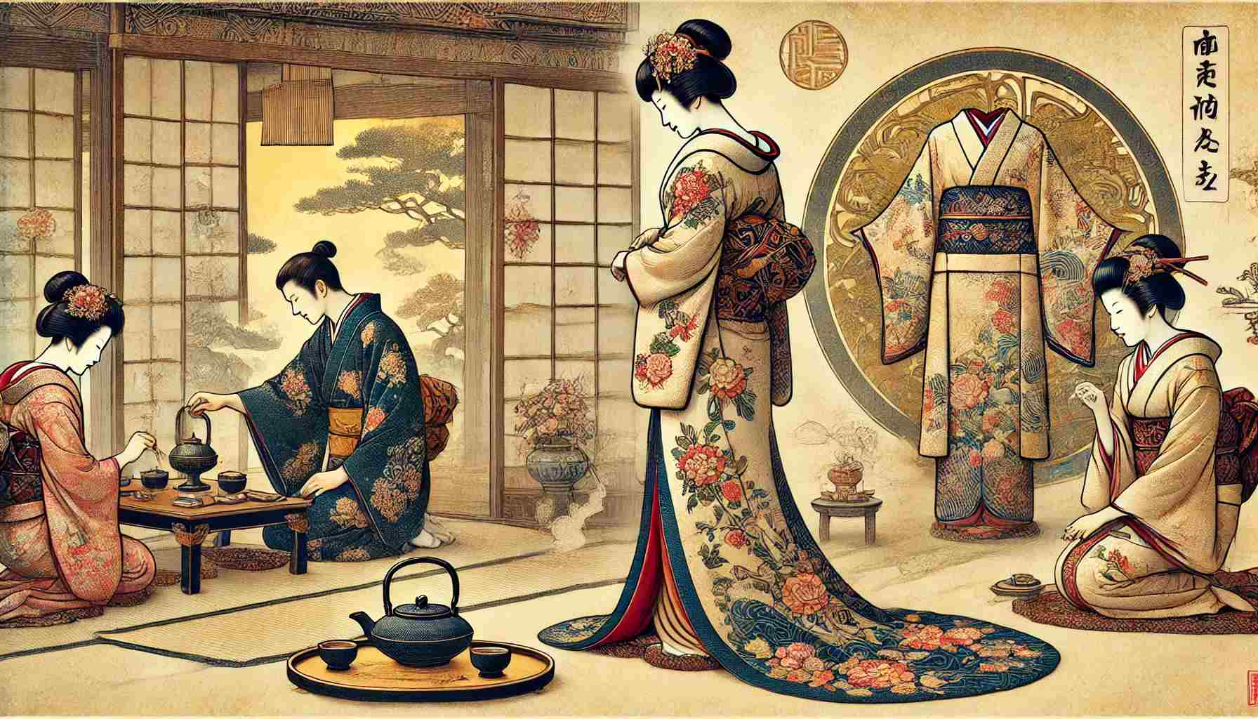 Халати з шовку з ручною вишивкою носили на весіллях, чайних церемоніях та інших важливих подіях. Кожен колір і візерунок мав глибоке символічне значення.
