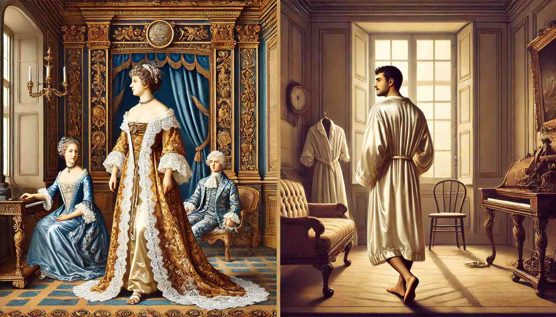 - Аристократія: У XVIII столітті халати стали модним аксесуаром серед знаті. Їх шили з шовку, оксамиту чи кашеміру. Вони доповнювалися мереживом і вишивкою, підкреслюючи статус власника.