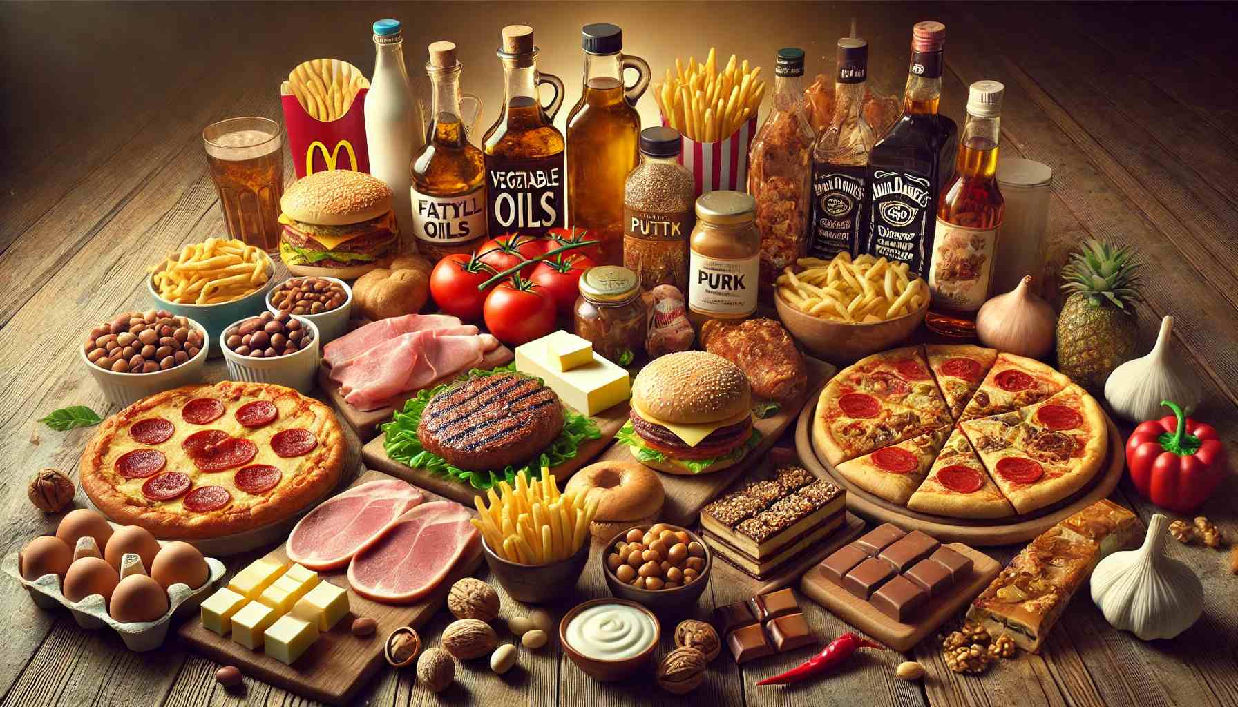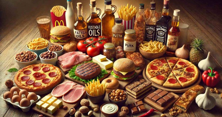 - Фастфуд: гамбургери, картопля фрі, піца.