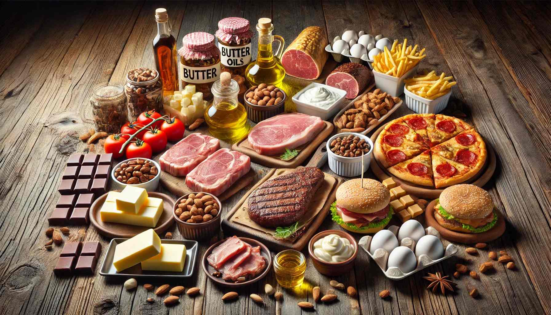 - Олії та жири: вершкове масло, рослинні олії, тваринний жир.