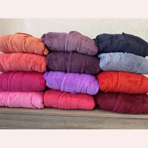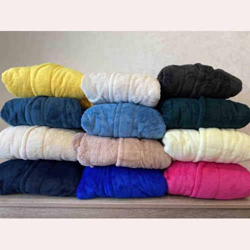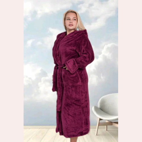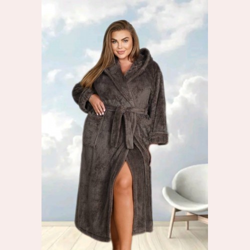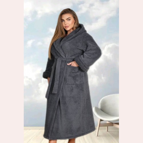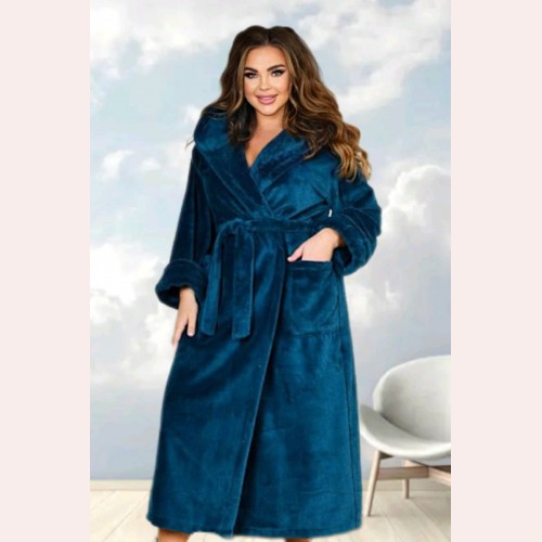 Жіночий махровий халат великого розміру поєднує комфорт, тепло та затишок для щоденного використання. М’яка пухнаста тканина велсофт приємна до тіла, добре вбирає вологу та дарує відчуття ніжності після душу або ванни.