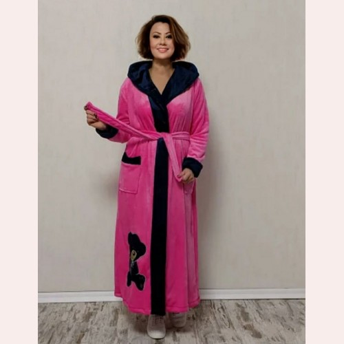 Гарний модний довгий махровий халат. Якісний, легкий, теплий довгий халат з капюшоном. Довжина халата до середини ікри, рукав довгий з манжетом, вишивка внизу халата симпатичного ведмедика. Затишний, м'який, пухнастий халат для дому та відпочинку, добре зігріває, не електризується! Довгий жіночий махровий халат-Лілія, дуже багато і нарядно виглядає, він стане незамінним подарунком для дівчат і жінок. Досить купити довгий жіночий махровий халат Мишка і носити з великим задоволенням довгий час!