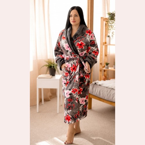 Жіночий махровий халат з квітами