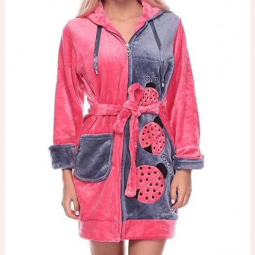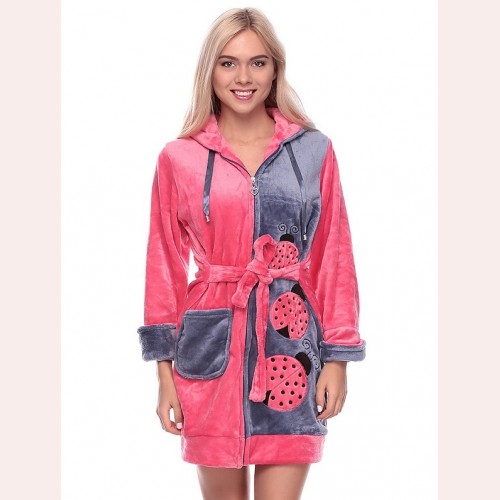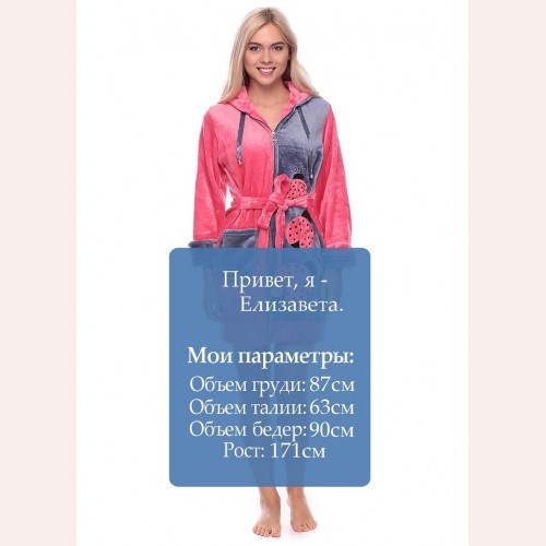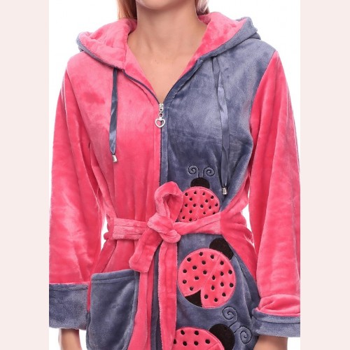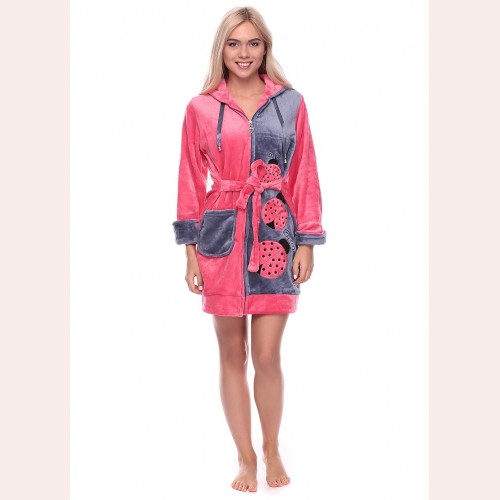 Красивый мягкий и пушистый, тёплый халат из качественной полированной махровой ткани (Велсофт). Длина по колено (стандарт 90-100 см.), имеются удобные карманы. Размеры от 44 до 50. Уютный махровый халатик молодёжный для дома и отдыха. Новый, модный рисунок с божьими коровками. Халат на змейке с капюшоном, он станет незаменимым подарком для девушек и женщин. Не электризуется и не линяет, возможна машинная стирка! Достаточно купить махровый халат на девушку и наслаждаться теплом и качеством изделия.