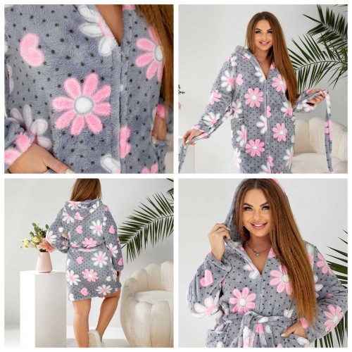 Интернет магазин «Закупка 24» - вам поможет! Махровый короткий женский халат с капюшоном. Красивый пушистый, тёплый халат из качественной махры (Велсофт). Длина по колено (стандарт 90-100 см.), имеются удобные карманы по бокам, на груди аппликация пчелок. Размеры от 44 до 52. Уютный зимний махровый халат для дома и отдыха. Достаточно купить махровый женский короткий халат и он станет незаменимым подарком для девушек и женщин. Не электризуется и не линяет. Достаточно купить махровый женский короткий халат и носить с большим удовольствием долгое время!