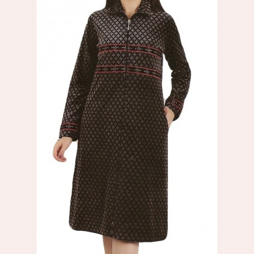 Новая модель халата из велюра на молнии с длинным рукавом. Халат велюровый с модной и интересной вышивкой на груди - смотрится очень богато, размеры халатов от 50 до 56. Велюровая ткань халата хорошо переносит машинную стирку, не линяет и не садится. Основа халата может быть разной. Достаточно купить велюровый халат с длинным рукавом и носить с большим удовольствием долгое время!