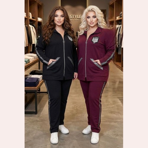 Женский спортивный костюм-двойка больших размеров с люрексными вставками