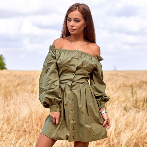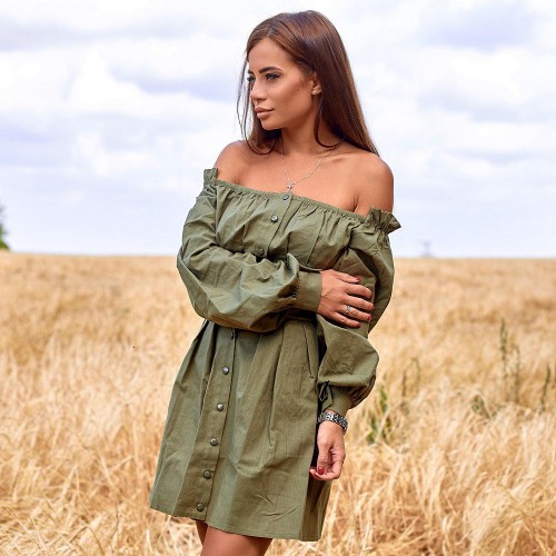 Платье льняное модель 11311 Лен – роскошный натуральный материал, очень красивый по своей текстуре, приятный к телу и стильный. Современный лен более тонкий, чем раньше, но такой же шикарный. На нем образуются стильные заломы и помятости, не нуждающиеся в заутюживании. На пике популярности экологичность во всем, а значит, купив льняное платье, вы будете в тренде.Плечи максимально обнажены, верхняя линия изделия схвачена кулиской, образующей мягкие складки. Рукава пышные, доходящие до запястья. На верхней части рукава кулиска удлиненная, за счет чего образуются игривые женственные оборки, напоминающие вертикальные эполеты. Декорировано платье рядом пуговиц по передней полочке изделия и сборкой в складки по линии талии. Девушкам, которые любят романтику, стиль кантри, эта модель будет в самый раз. На выбор несколько сочных оттенков: деним, хаки, белый. Заказывайте льняное платье в магазине Dress Code – проведите это лето с максимальным комфортом и стилем