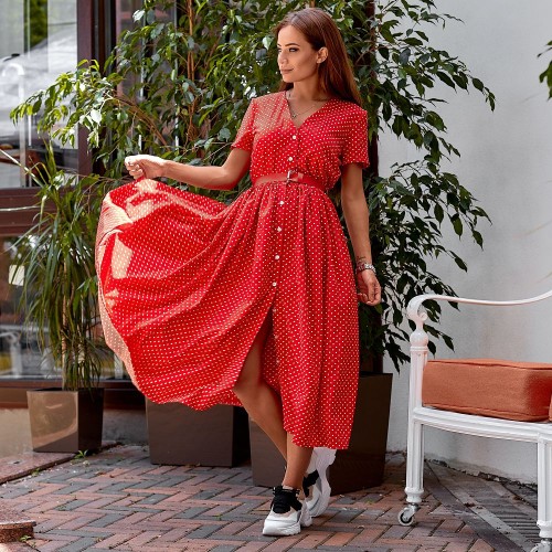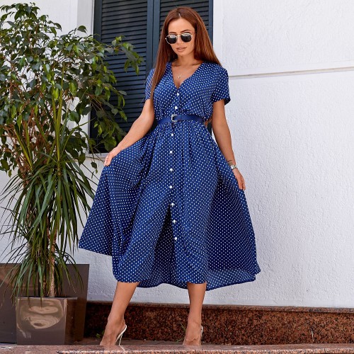 Платье в горошек с поясом 11308
