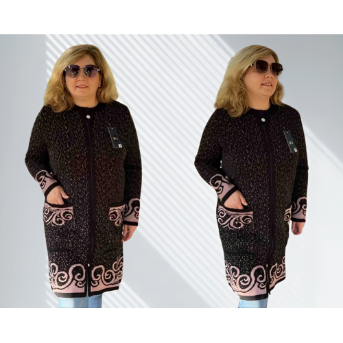 Тёплый женский удлинённый кардиган - идеальное сочетание уюта и стиля. Выполнен из мягкой пряжи, хорошо держит форму и согревает в прохладную погоду. Женский кардиган в больших размерах от 50 до 66, плотный кардиган на молнии, есть удобные карманы. Практичный крой и современный дизайн делают его универсальным элементом гардероба для офиса, прогулок и отдыха.